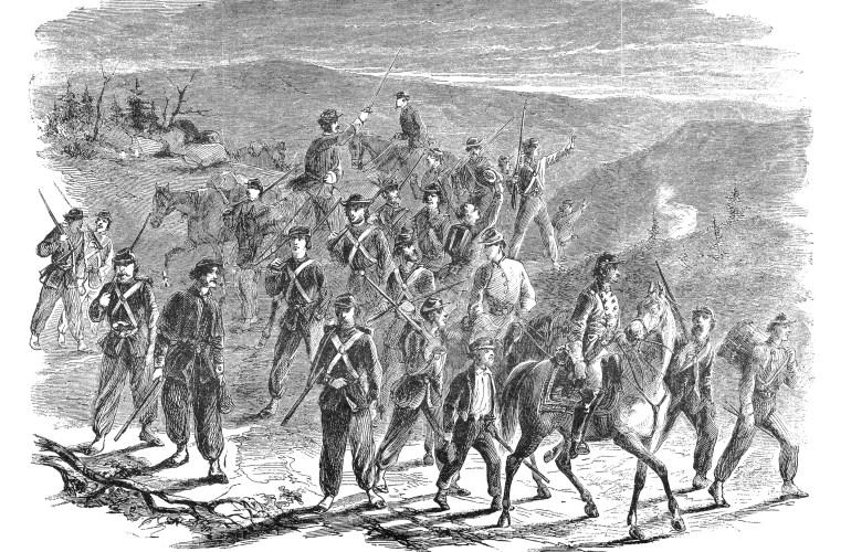 Moving cautiously, Patterson pressed Col. Thomas J. Jackson’s brigade at Hoke’s Run and then occupied Martinsburg, an important stop on the Baltimore & Ohio (B&O) Railroad whose population was largely sympathetic to the Union cause. Even so, his army suffered from supply shortages and struggled with undisciplined 90-day volunteers. Forced to forage for food in the countryside, Patterson’s men stumbled into at least one deadly clash with Lt. Col. J. E. B. Stuart’s 1st Virginia Cavalry.