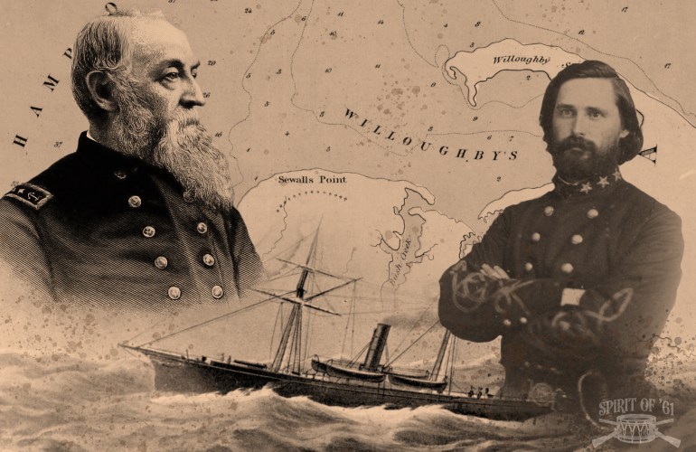 Meanwhile, Governor John Letcher placed 65-year-old Flag-Officer French Forrest in charge of the Gosport Navy Yard. A lifelong sailor, Forrest had fought in both the War of 1812 and the Mexican-American War, and was to cooperate with Virginia Brig. Gen. Walter Gwynn, a former railroad engineer commanding the land forces. To prevent Union ships and troops at Fort Monroe from retaking the yard, Gwynn began constructing an artillery battery at Sewell’s Point, directly facing the fort.