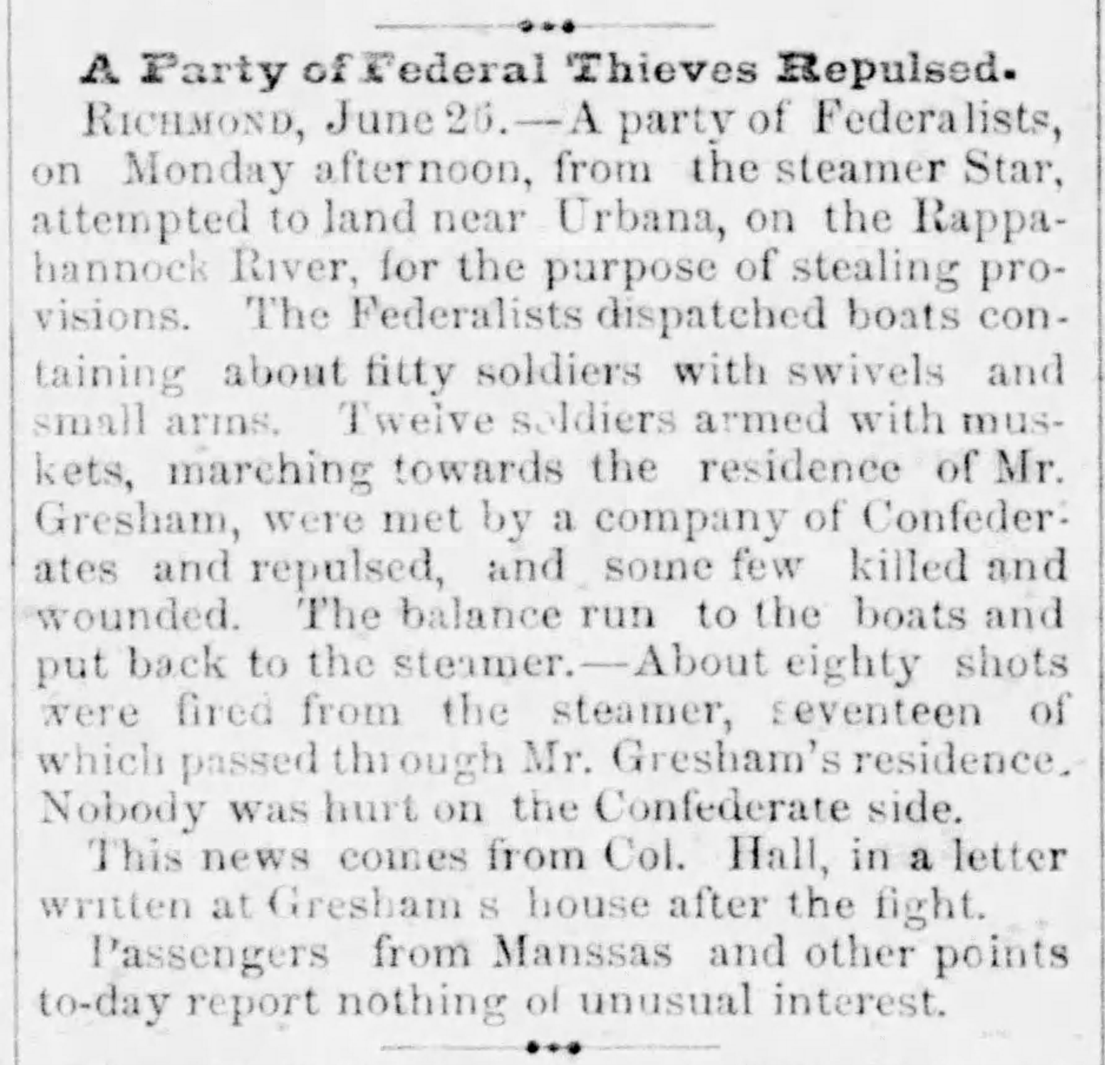 Richmond Dispatch (Richmond, VA) 27 June 1861.