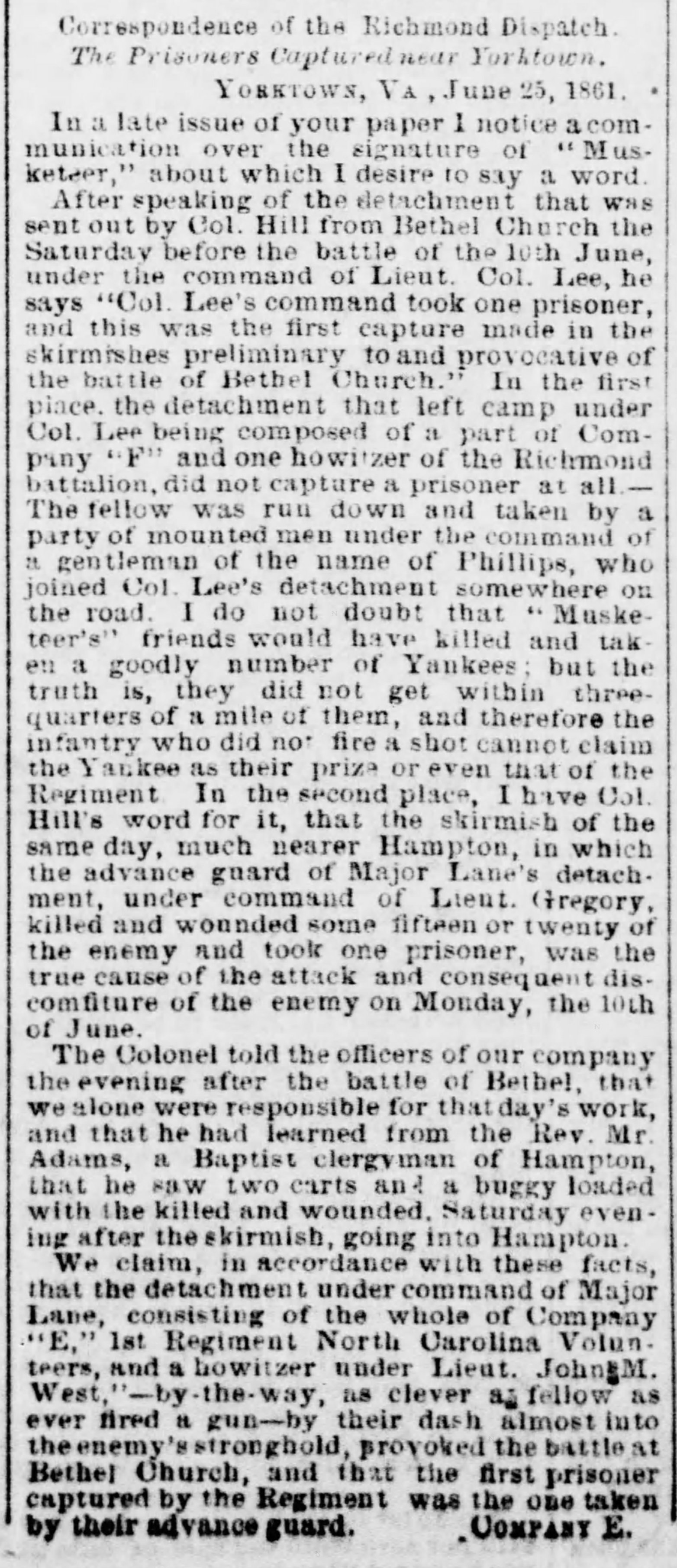 Richmond Dispatch (Richmond, VA) 28 June 1861.