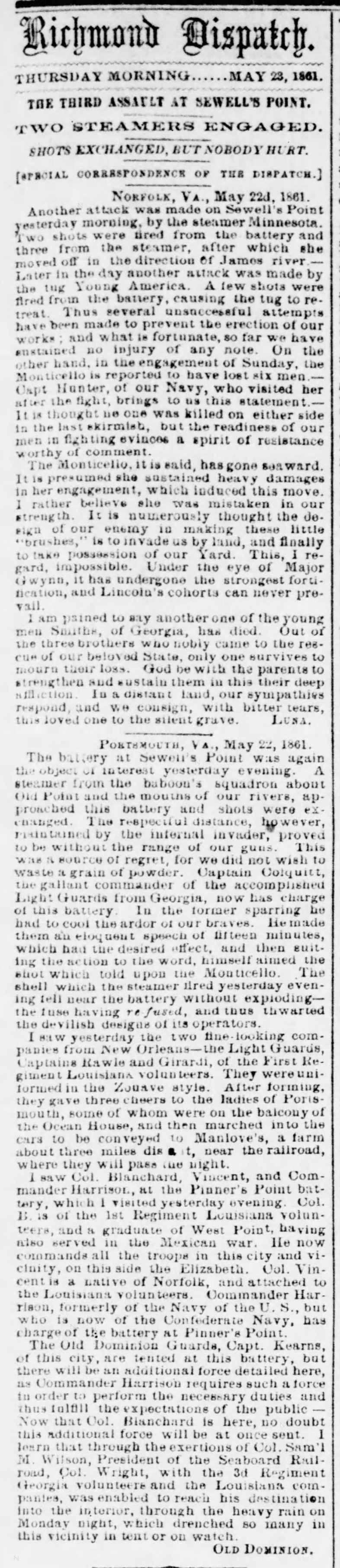 Richmond Dispatch (Richmond, VA) 23 May 1861.
