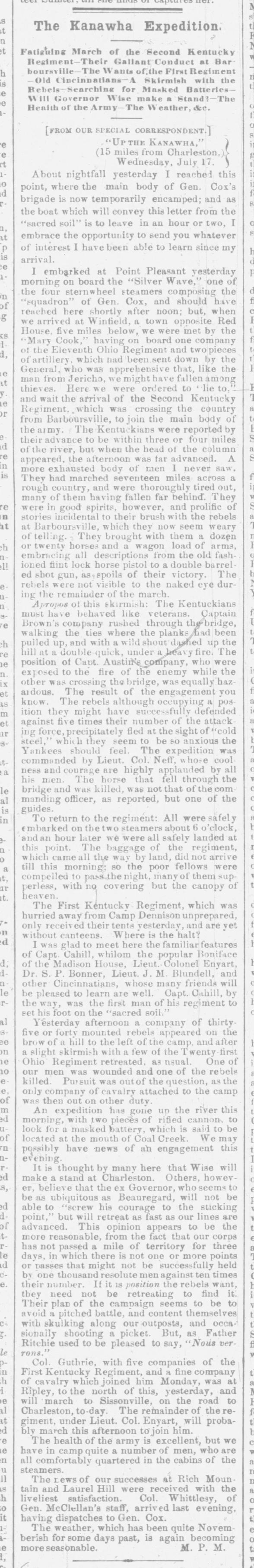 - July 11 Report of Jacob D. Cox, District of the Kanawha