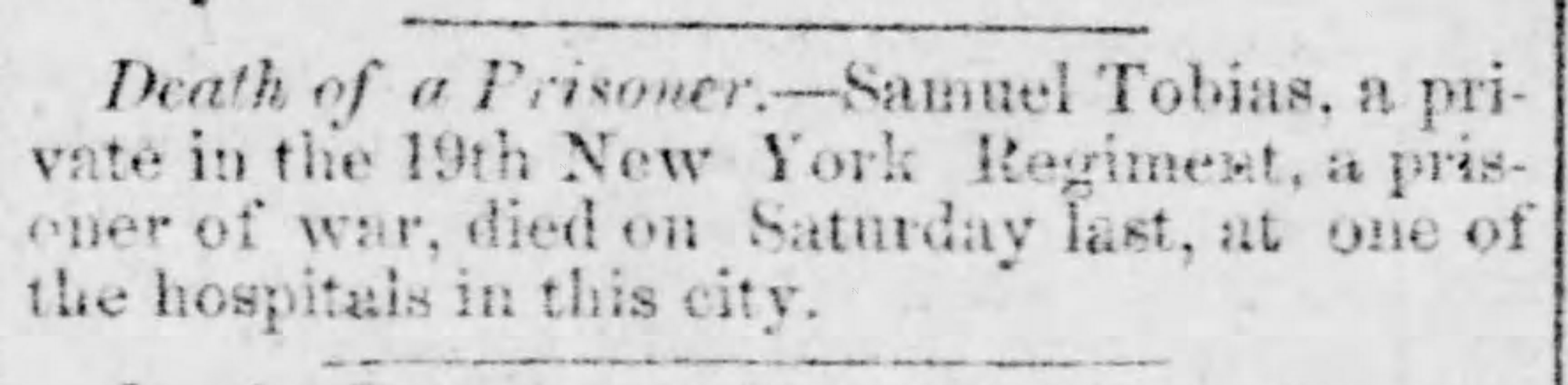 By the time Col. Clark arrived with reinforcements, the Confederate cavalry had vanished over the horizon. Webster and Tobias were taken to Winchester for questioning, then sent on to Libby Prison in Richmond, where Tobias later died.