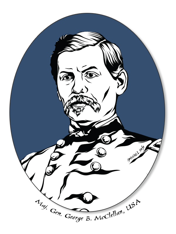 George Brinton McClellan was born in Philadelphia and graduated from West Point in 1846. He fought in the Mexican War, and his father was close friends with Maj. Gen. Winfield Scott, who would become overall commander of U.S. forces at the outbreak of the Civil War. McClellan’s services were highly sought after, but Ohio Governor William Dennison won the race and appointed him commander of all Ohio militia.