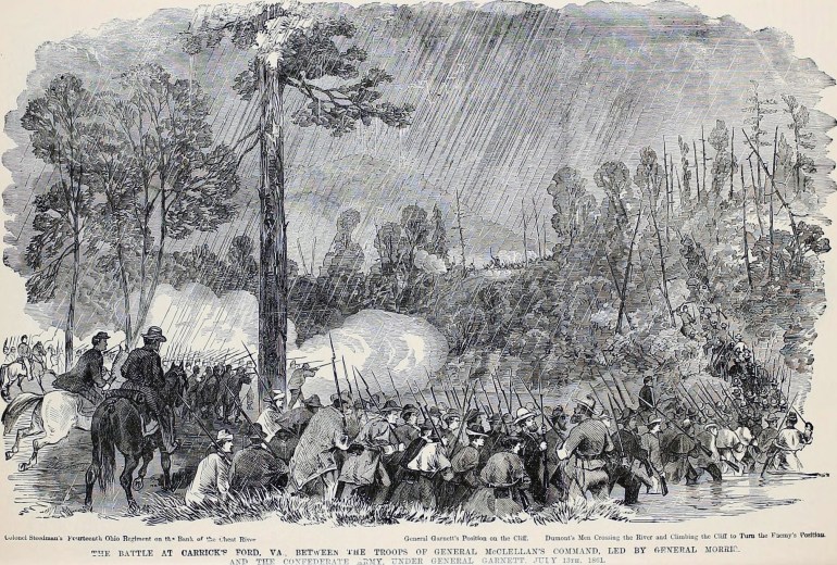 Confederate Brig. Gen. Robert S. Garnett is killed directing his men across Corrick’s Ford on Shavers Fork of the Cheat River. Farther west, Union forces route Confederates at Barboursville along the Guyandotte River.