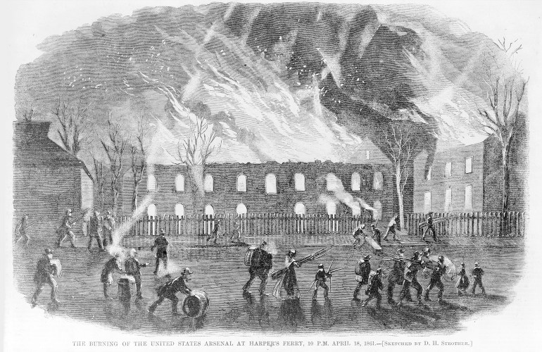 Union troops set fire to and evacuate Harpers Ferry Arsenal. Virginia militia seize most of its equipment.