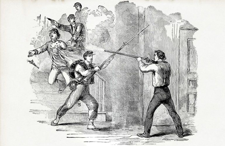 A large force of Union troops crosses the Potomac River into northern Virginia, securing Arlington Heights and Alexandria. Col. Elmer Ellsworth of the 11th New York “Fire Zouaves” is shot dead by the proprietor of the Marshall House Hotel. Ellsworth is the first Union officer to die in the Civil War.
